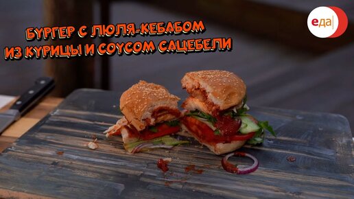 Бургер с люля-кебабом из курицы и соусом сацебели 🔥 «На гриле»