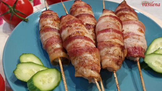 Нереально Вкусный ШАШЛЫЧОК из мяса индейки с беконом. Мясное эскимо .