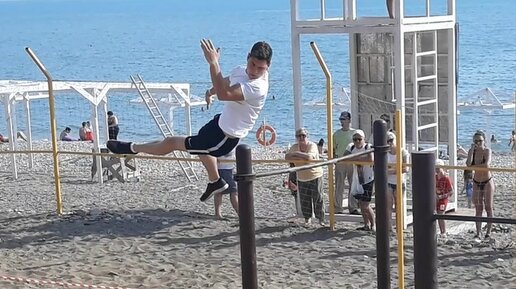 Парень победил гравитацию. Соревнования по воркауту на берегу Чёрного моря.