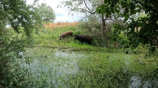 Кабанчики кушают траву!