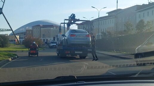 Первый раз вижу, как эвакуатор поднимает машину в Адлере недалеко от Сочи Парка