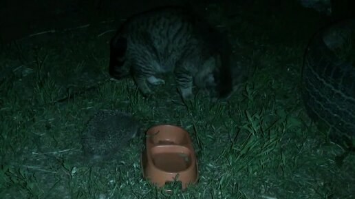 Кот и ёжик. Драки не вышло )))