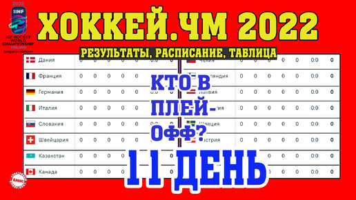 Чехия в ¼, Казахстан остаётся. ЧМ по хоккею 2022. Результаты 11 дня. Таблица. Расписание.