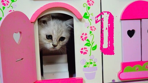 Funny kitten and cat.