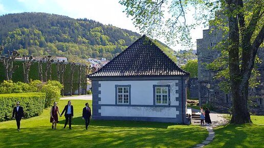 Показываю, как выглядят народные гулянья с городской стены Бергена.Как выглядят горожане