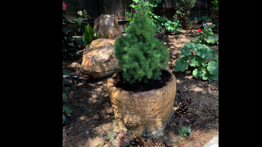Пенек-кашпо из цемента (самый быстрый и простой способ.)