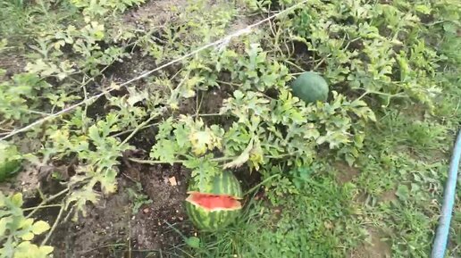 Арбузы потрескались на грядке. Дача в Подмосковье.