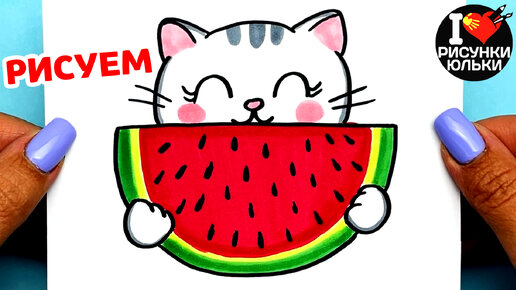 Как нарисовать Милого КОТИКА С АРБУЗОМ очень просто .Рисунки Юльки для срисовки