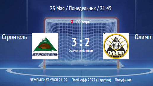 ХК Строитель (г.Уфа) - ХК Олимп (Бижбуляк) 23.05.2022 Полуфинал 1-ой группы Матч №2