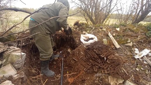 Нашёл Схрон Металла. Роют землю и достаю Железо.