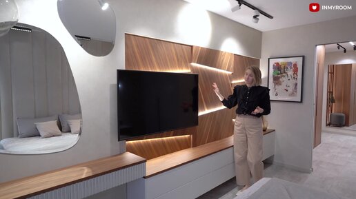 Спальня, в которой хочется рассматривать каждую деталь! Съемная отделка стен, светящееся панно, необычной формы зеркала и...
