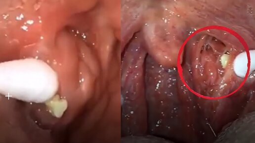 Удаление тонзилита! Гнойные пробки в горле! Много гноя!