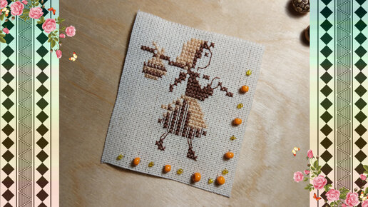 Девочка с узелком. Несложная вышивка из нитей 2 цветов