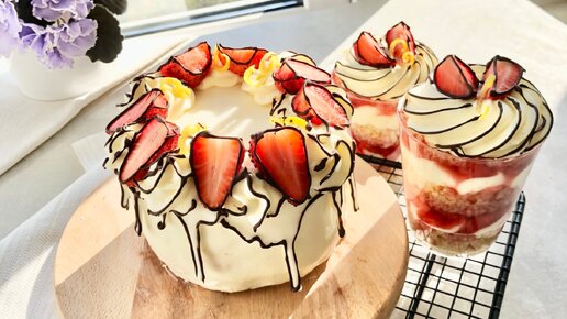 Бенто-торт и трайфлы в стиле 2D с клубничным конфитюром и лимонным крем-чизом | Мильфей