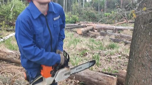 Валка дуба винтовым валочьным клином Stihl MS 361