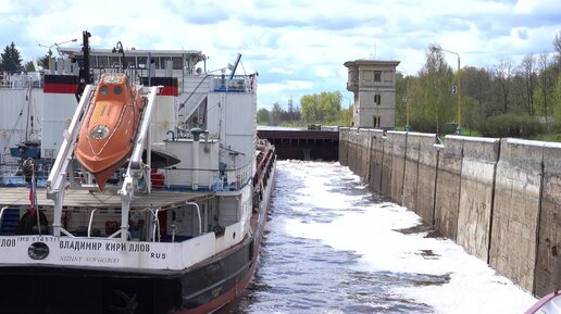 Часть 4. Вода в камере шлюза поднимается, бурлит и пенится