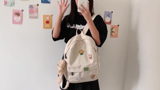 Рюкзак женский нейлоновый, с изображением медведя, школьный, сумка со значком