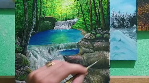 Водопад в лесу маслом часть 2 как рисовать водопад для начинающих Waterfall in the forest with oil