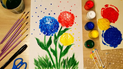 Рисуем цветы пупырчатой пленкой и гуашью. Простой рисунок в необычной технике
