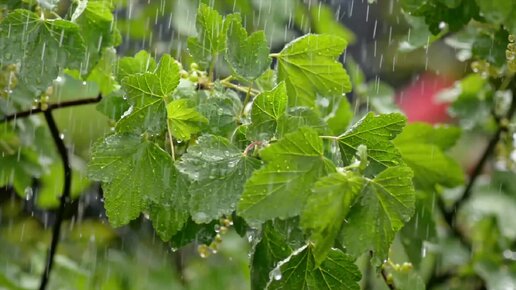 4К. РАССЛАБЛЯЮЩИЙ ГРОЗОВОЙ ДОЖДЬ ТАНЦУЮЩИЙ ВМЕСТЕ С ЛИСТЬЯМИ ВИНОГРАДНОЙ ЛОЗЫ.