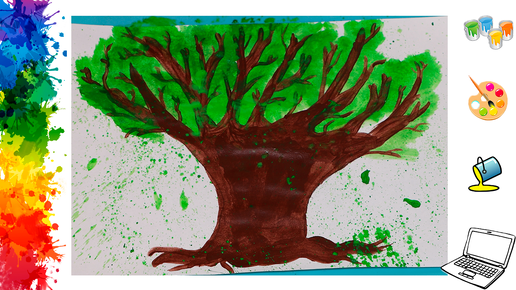 Как нарисовать дерево поэтапно, лёгкий рисунок дерево карандашом и красками для детей
