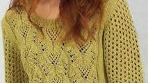 Пуловер, связанный двумя видами ажура - японским и сетчатым.