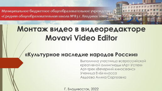 Мастер-класс "Монтаж видео в видеоредакторе Movavi Video Editor"