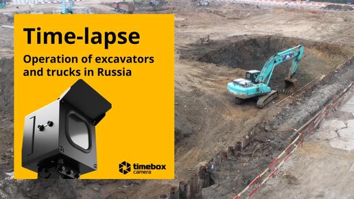 Таймлапс съёмка работы экскаваторов и грузовиков перед строительством. Таймлапс камера Timebox Pro