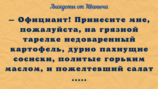 Случай в ресторане. Новые и старые Анекдоты до слёз!!!