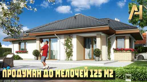 Компактный и продуманный одноэтажный дом 125 м2. Обзор дома в современном стиле с гаражом и террасой