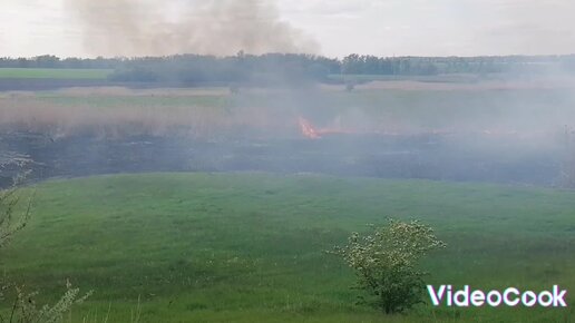 Огонь не щядит зелёную траву. Сильная штука огонь. Впервые увидел как горит зелёная трава да ещё и с ветерком. Полный фарш.