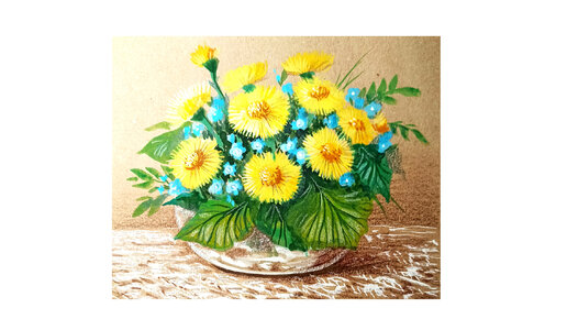 Мать и мачеха. Рисунок букета в стеклянной вазе на крафтовой бумаге.