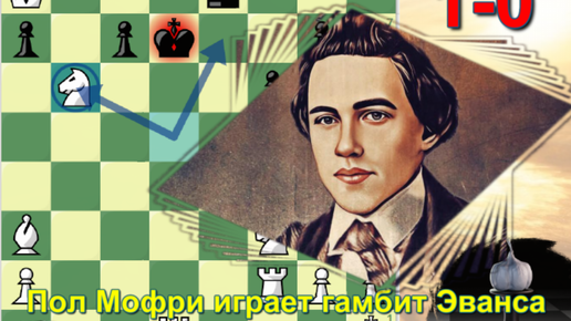 Пол Морфи играет любимый гамбит Эванса и затаскивает Хамтона в ужасную передрягу уже к 17 ходу, заставляя сложить оружие, 1858