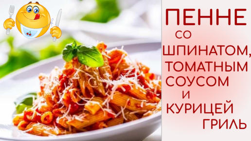 Пенне со шпинатом, томатным соусом и курицей гриль