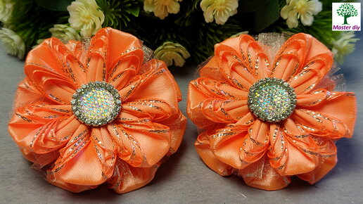 Очень простые бантики из атласной ленты с люрексом Интересный лепесток Мастер класс\Master diy канзаши