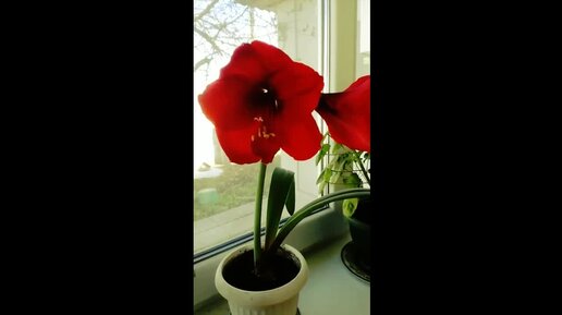 Цветёт гиппеаструм на окошке, а за окном весенний цвет!