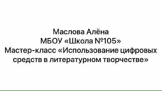 Маслова Алена. Трек "Книжная полка". Мастер-класс "Использование цифровых средств в литературном творчестве".