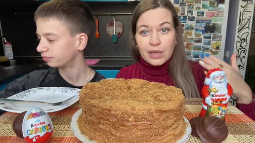 СЛАДКИЙ МУКБАНГ_ТОРТ МЕДОВИК_КИНДЕР_SWEET MUKBANG _ CAKE MEDOVIK _ KINDER