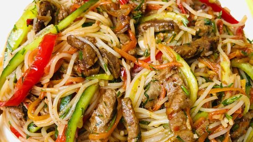 Популярный восточный салат. Как приготовить салат, без майонеза Фунчоза