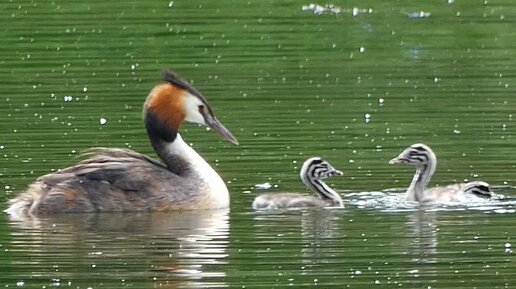 Птенцы - зебрики! Чомга воспитывает свое семейство!