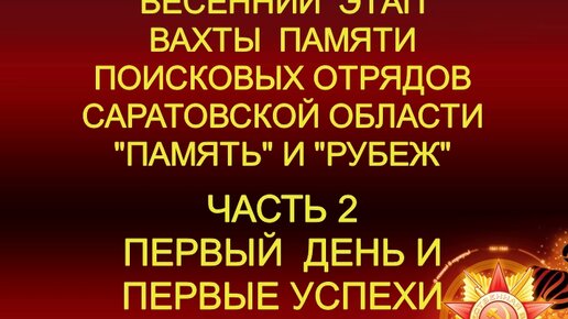 ВЕСЕННИЙ ЭТАП ВАХТЫ ПАМЯТИ ПОИСКОВЫХ ОТРЯДОВ "ПАМЯТЬ" И "РУБЕЖ" ИЗ САРАТОВСКОЙ ОБЛАСТИ. ВТОРАЯ СЕРИЯ.