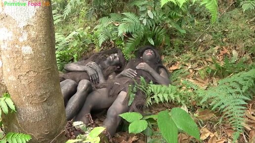 Первобытная жизнь. Лесные люди охотятся на животных