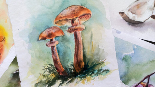 Рисуем грибы опята - как нарисовать грибы.