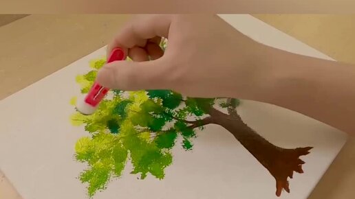 ✅🌳Рисование с помощью бельевых прищепок👍😁. Лёгкий способ рисования 🎨красивого дерева🌳 акрилом. Техника для начинающих 👨🎨