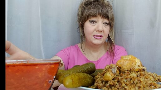 МУКБАНГ 🥘ГРЕЧКА С ГРУДКОЙ ОГУРЧИКИ