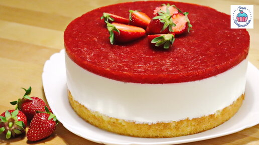Торт "Йогуртовый с Клубникой": большой, красивый и аппетитный, а съедается очень быстро;)