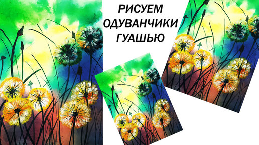 Как нарисовать одуванчики. Летний пейзаж гуашью.
