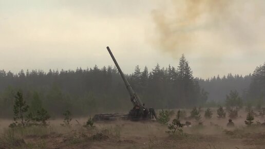 Расчеты 203-мм самоходных орудий 2С7М «Малка» разрушают фортификационные сооружения ВСУ