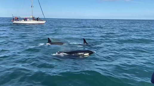 Косатки рядом с яхтой