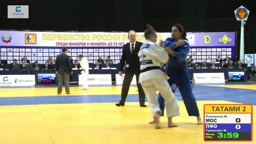 63 kg Романько В Гуматова Ф 31 03 2015 Т2 Первенство России по дзюдо среди юниоров и юниорок, ТЮМЕНЬ
